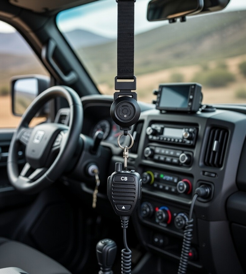Deshalb nutze ich ausziehbare Schlüssel-Rückholbänder. Das Mikrofon meines CB-Funks hängt an so einem Band an der Sonnenblende. Ich ziehe es herunter, funke – und es verschwindet automatisch wieder an seinen Platz. Auch Camp- oder Fahrzeugschlüssel sichere ich auf diese Weise.