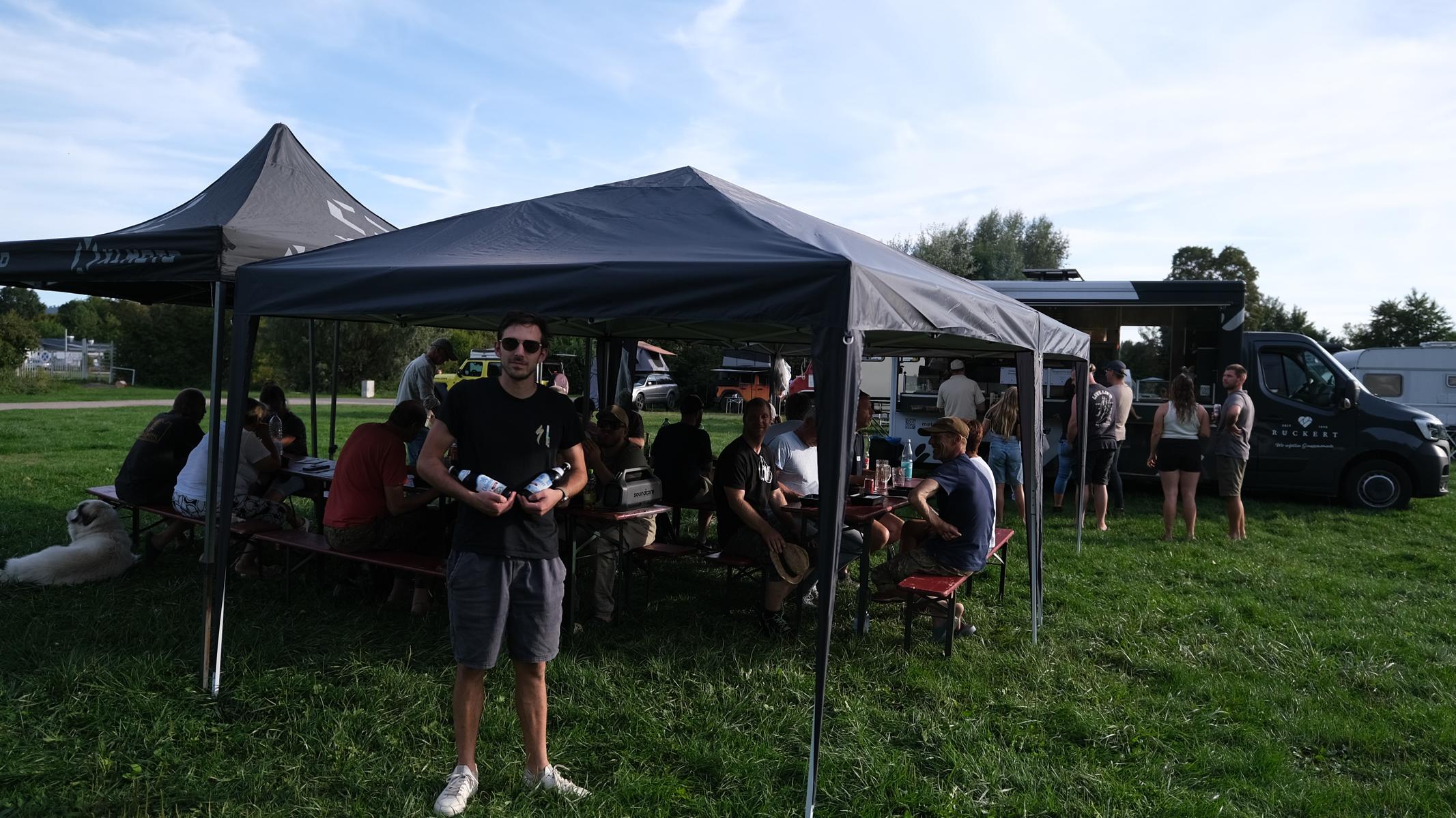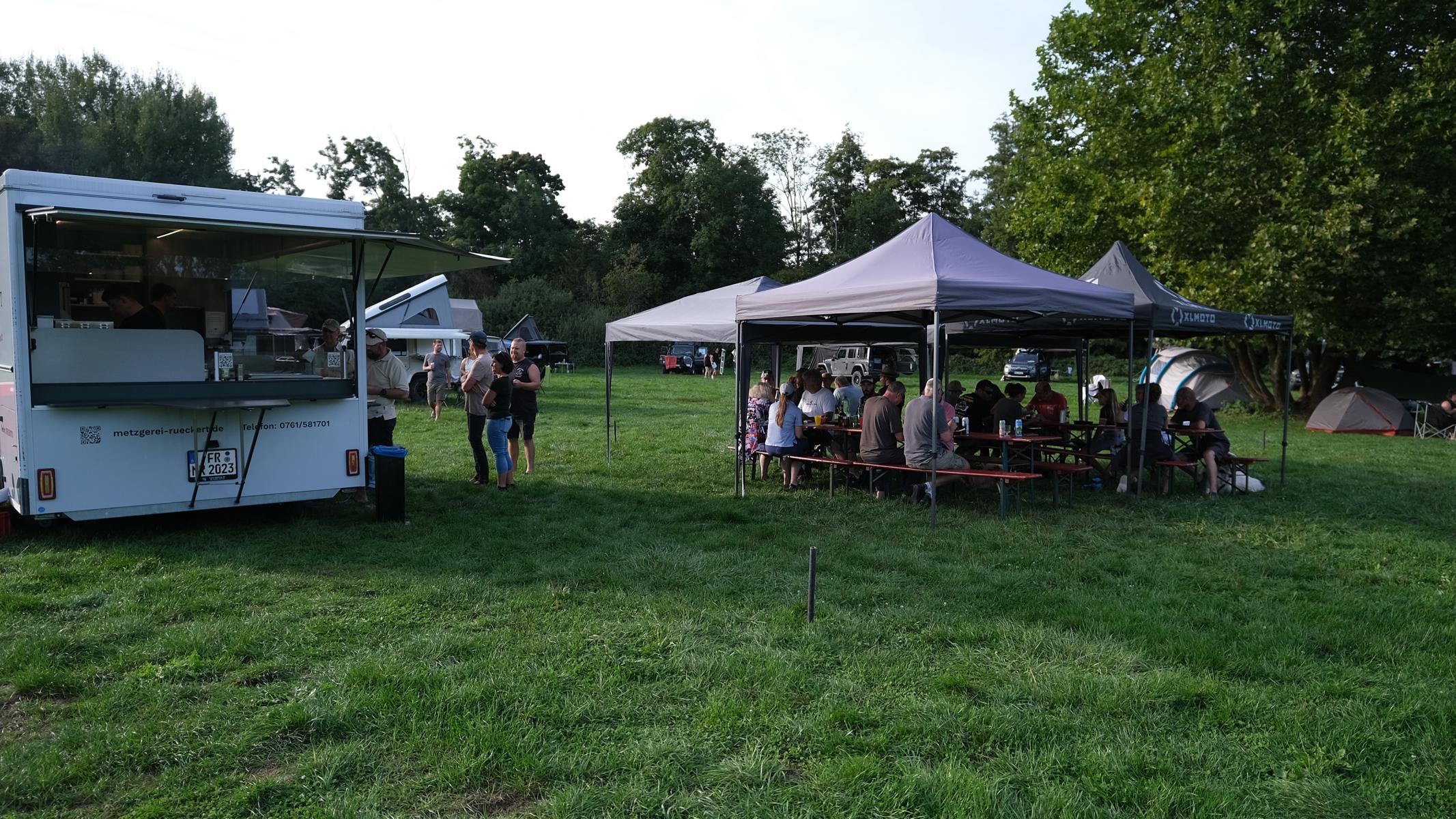 Die Zeltwiese liegt direkt am Baggersee Schuttern, eingebettet in die Natur. Sie bietet Platz für bis zu zweihundert Fahrzeuge und grenzt unmittelbar an den See – perfekt zum Baden, Abschalten und Genießen. Toiletten befinden sich direkt am Platz, Duschen sind fußläufig erreichbar. Die Anreise ist flexibel möglich: Wer möchte, kann bereits am Freitag, den 8. August 2026, zwischen 17 und 22 Uhr anreisen oder alternativ am Samstag ganztägig eintreffen.