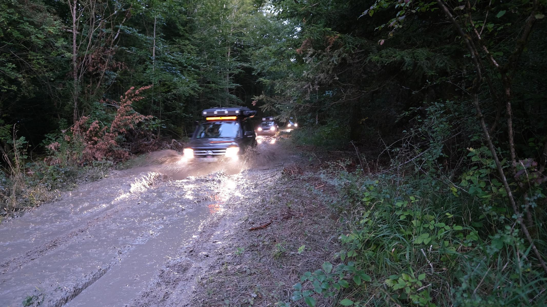 Besonders spannend: In diesem Abschnitt spielt das Wetter eine große Rolle. Nach Regen verwandeln sich einige Passagen in matschige Rinnen oder aufgeweichte Wiesen – anspruchsvoll, aber nicht unbezwingbar. Wer mit Bedacht fährt und seinen Allradantrieb zu nutzen weiß, wird viel Fahrtechnik lernen und vor allem: Spaß dabei haben.