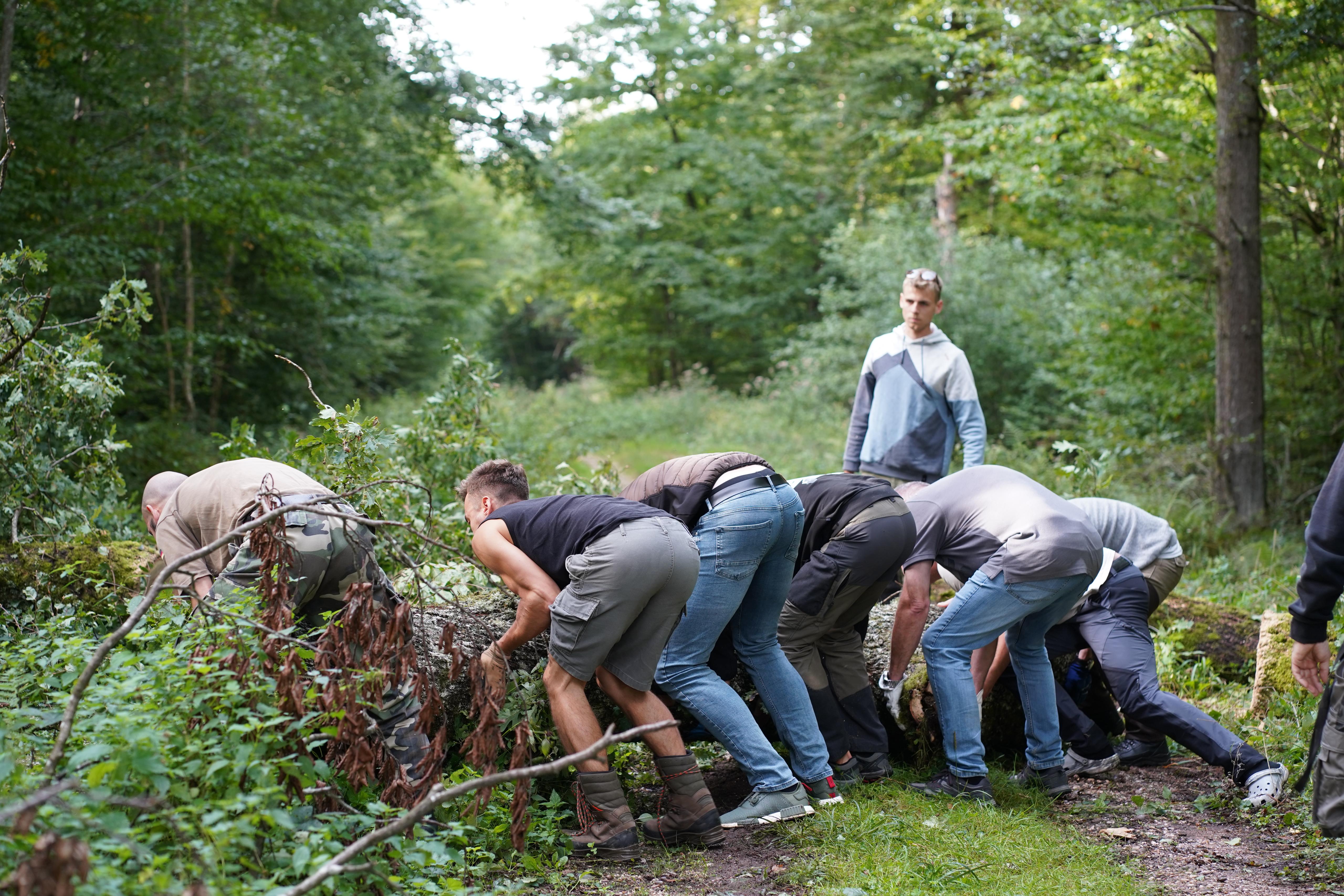Der erste Fahrtag führt tief in die wilde Natur der Südvogesen – ein Gebiet geprägt von dichten Nadel- und Mischwäldern, schroffen Höhenrücken und abgelegenen Lichtungen. Die Landschaft ist urwüchsig und erinnert stellenweise an skandinavische Wälder: raue Felsen, moosbedeckte Böden, kristallklare Bäche und ein ständiges Spiel aus Licht und Schatten unter dem dichten Blätterdach.